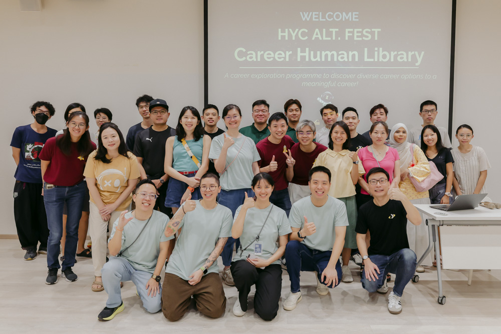 Participants Vinesh Mano (photo below, wearing a black cap) and his wife Maxine Chen (on his right) found the session eye-opening. They “borrowed” human books representing careers in nursing, publishing, quantity surveying, and evidence collection. Maxine was especially intrigued by Liu Yujun Dave, an engineering graduate who left his third job out of monotony and found purpose as an Evidence Collector, working alongside investigation officers at crime scenes.