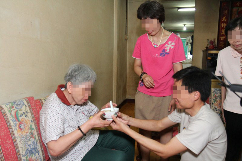 In the six months that Madam Hu was in their care, volunteers not only helped with the family’s personal grooming and gave them haircuts, they also brought Madam Hu to the Tzu Chi Free Health Screening and Medical Clinic for a medical checkup. With a fear of hospitals linked to her late husband’s passing, it took the volunteers’ persistent reassurances and patient explanation before Madam Hu agreed to the checkup. Coincidentally, during the checkup it was discovered that there was a problem with Madam Hu’s cornea and she was immediately transferred to hospital for treatment. It was a timely move that saved her eye from further deterioration and permanent visual impairment.