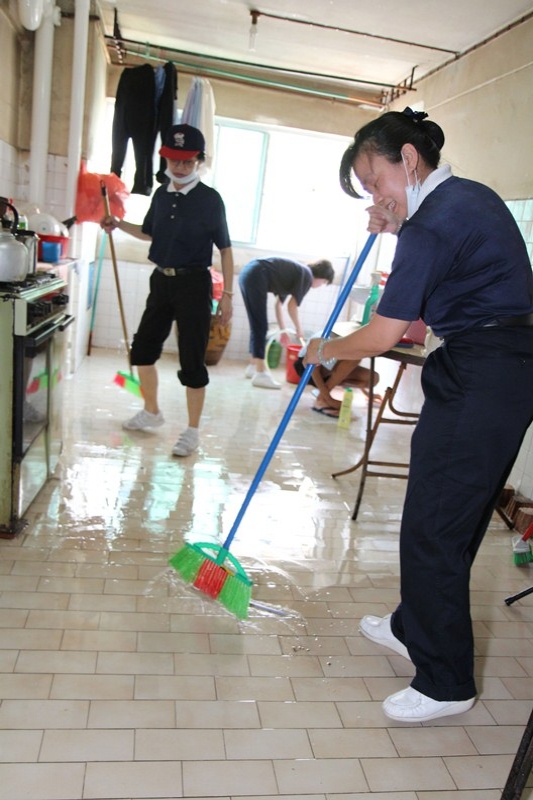 Seeing the volunteers whole-heartedly contributing to the cleaning efforts, Mei Hua joined them in cleaning the kitchen while her brother Guang Jun lent a hand to volunteers cleaning the hall. Working together hand in hand, it felt like a family of brothers and sisters were spring cleaning their own home.
