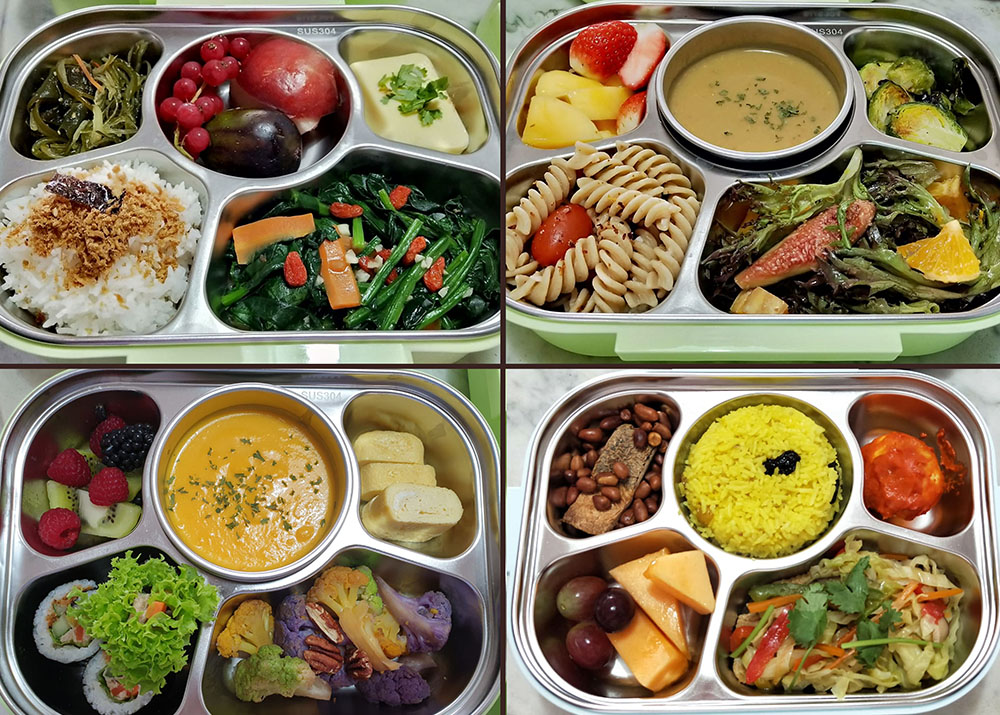 When Lim Wah Chun prepared the lunchboxes, she would often try to use different ingredients to make the meals interesting and to increase the variety of dishes provided. For example, instead of solely serving rice as the main source of carbohydrates, she would also replace it with sushi, pasta, or bee hoon. Whereas for proteins, she would serve other ingredients such as tempeh, chickpeas, quinoa, or edamame, instead of the commonly used tofu. Apart from making the meals varied, she would sometimes give the vegetarian meals an exotic spin. Lastly, the finishing touch to a nutritional meal was to add different types of colourful fruits into the lunchboxes.