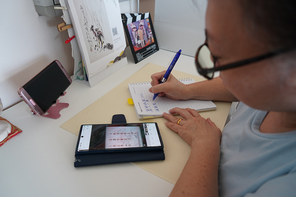 After the COVID-19 outbreak, the Dharma Incense Permeation session at dawn is switched online so that volunteers can attend the session at home. It has provided an opportunity for Lee Sok Kuan for a change. She can use her computer, mobile phone and notebook simultaneously and listen to Dharma more attentively as she stays alone. Lee spends two hours every day copying Master's dawn teachings and the verses of the Lotus Sutra to improve her reading and writing skills.