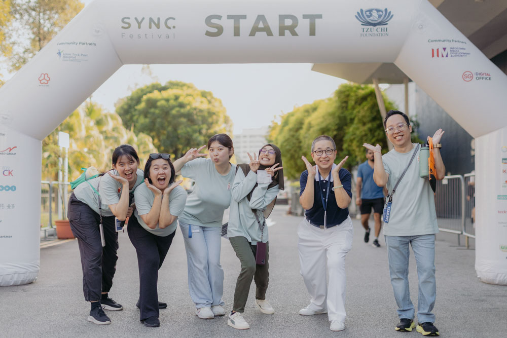 At the inaugural SYNC. Festival organised by Tzu-Chi Foundation (Singapore), Keng Lim casually posed for a photo with the young colleagues from the Tzu Chi Humanistic Youth Centre.