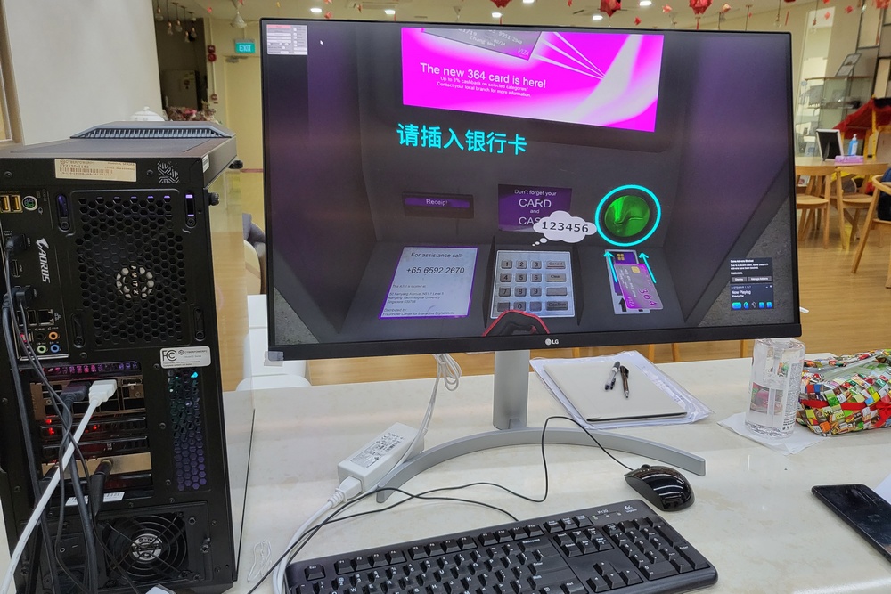 A screen showing what participants saw during the process of learning how to do ATM cash withdrawal on the VR system. (Photo by Wong Yen Hoon)
