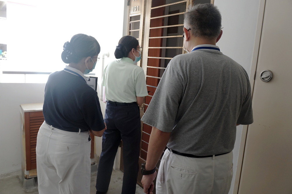 Door-to-door visits are the norm for Tzu Chi volunteers and staff during the community outreach. (Photo by Bernard Ng Jia Han)