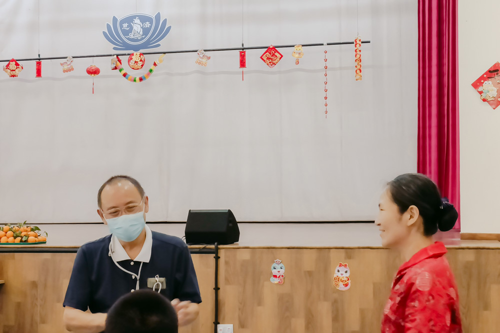 For the institutional care activities at the IMH, Lam Chee Onn has played the role of the God of Wealth ten times. On this day, he also conveyed sincere blessings to the head of the Institute and expressed heartfelt gratitude for their assistance, which allowed Tzu Chi volunteers to celebrate the New Year with the residents. He emphasised that this support enables volunteers to spread warmth and blessings to each resident.