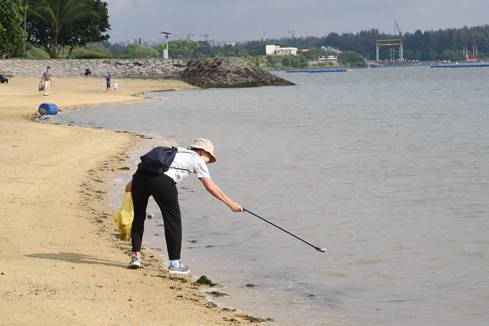 Chung Soon Ann picking up the litter intently. It is his first time participating in a beach clean-up.