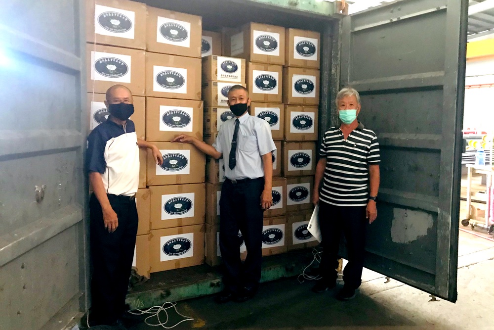 2021年4月19日,慈济志工陆续把捐赠给柬埔寨的物资搬上货柜。(摄/ 邱建义)