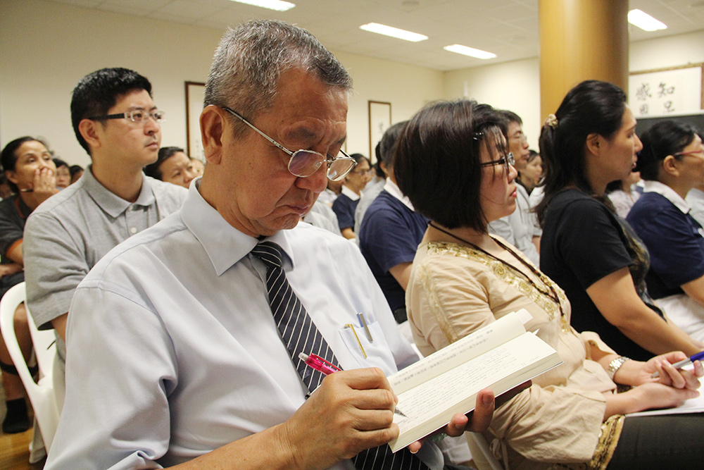 乐在学习的沈喜洲,年轻时上夜校半工半读,打拼事业时也持续进修,自我提升,不与时代脱节。如今他每天凌晨四点半起床,以“薰法香”展开充实的一天。“佛法是一门哲学,指导生命的方向。上人每天苦口婆心地开示,我们就跟着他的脚步一步步走。”因此他自我期许“每天薰法就不会懈怠”。