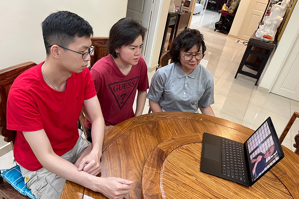 实业家张秀玲与儿女一起连线参与周年庆活动。(提供 / 张秀玲)