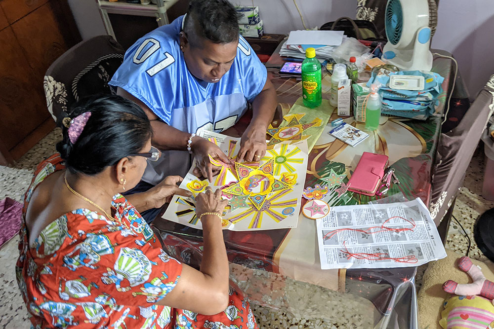 信奉兴都教的印度同胞会趁着屠妖节,在家中点起温暖的黄色油灯,并挂上灯饰等吉祥图案,祈愿在未来一年平安吉祥。今年节目组增设了灯饰制作环节,线上一步步耐心示范,照顾户们跟着荧幕画面一起制作灯饰。虽然步骤有些繁琐,但完成后,大家纷纷地开心举起手中的灯饰合影。