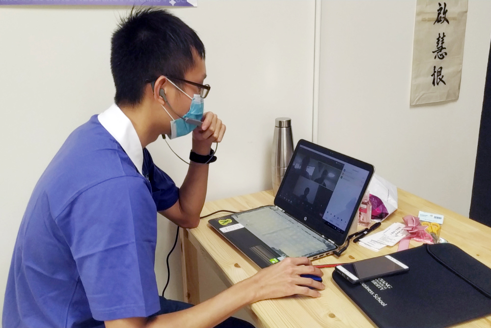 疫情期间,课辅计划由慈青担任小老师,用网络连线的方式,协助课业跟不上进度的学生。(摄/ 颜明德)