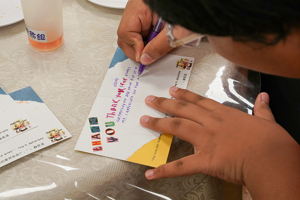 当天师生可以在彼此的专属卡片上留言,说出心里的感恩。(摄/ 黄伟伦)