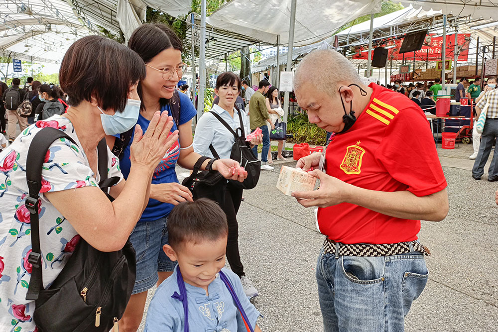除了果汁摊位,身为连锁咖啡店业者金味集团(Kimly Group)董事的白允枝也赞助年货摊位,他表示疫情期间的两年义卖会,“出钱”护持比较简单,但能来到现场“出力”付出更加欢喜。
