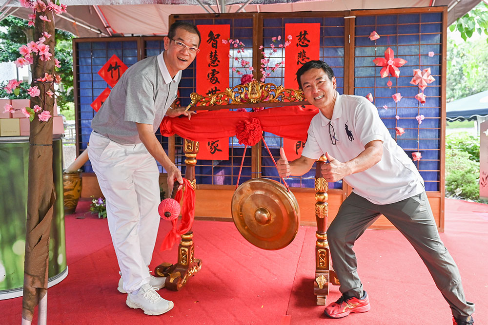 实业家白允枝(左)护持新春义卖多年,比起疫情期间的线上义卖,他认为能来到现场“出力”付出更加欢喜。