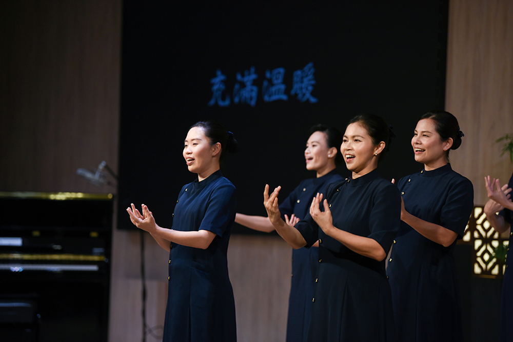 慈济志工手语演绎一首《温暖》,让观众沉浸在一片祥和曲声中。(摄/ 蔡佑良)