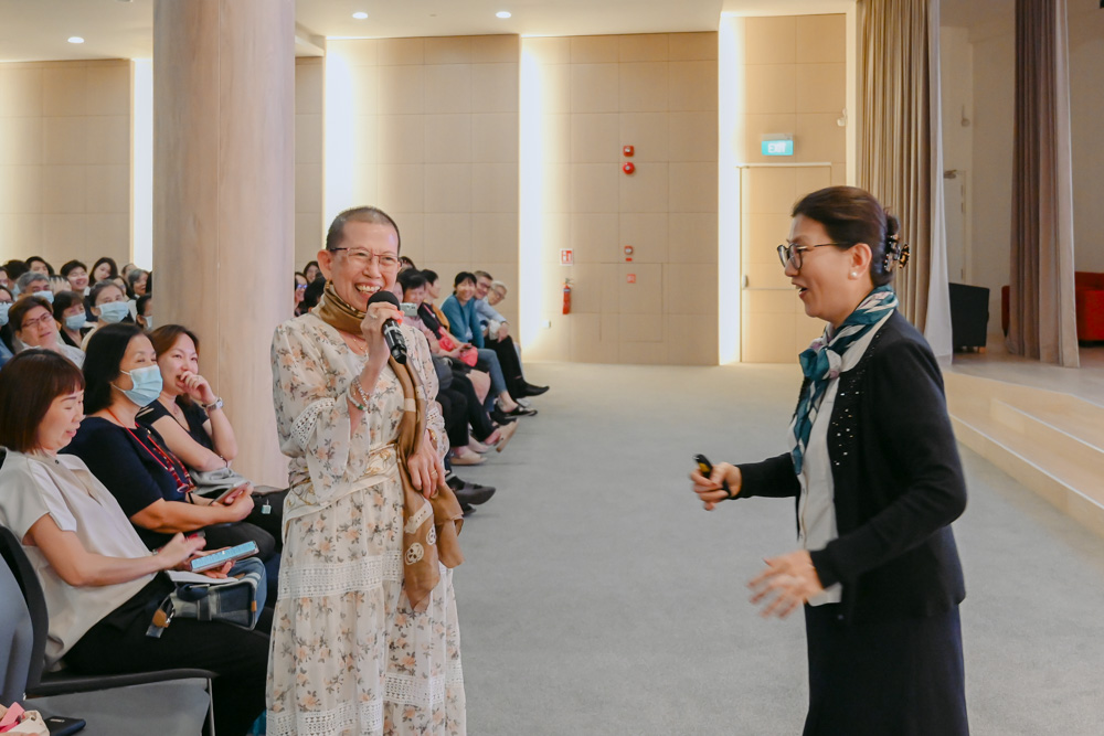 “生气就是拿别人的过错惩罚自己”“过去是杂念,未来是妄想;把握现在,做就对了。”谢丽华引用静思语的智慧,提醒大家要承认情绪,调节内心。