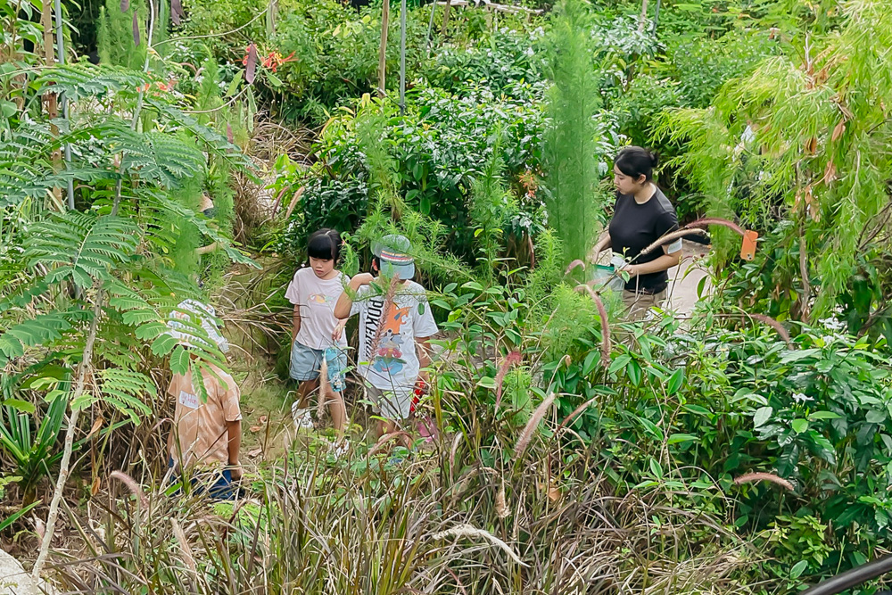 “很多教育活动都集中在净滩、环保回收等具体议题,但很少机会让孩子真正亲近大自然。”两人想让永续议题变得贴地,连接新加坡的实际处境,Chloe说:“在新加坡,接触自然的风险经常被放大,比如害怕孩子摔倒或受伤,这让我们觉得需要用更轻松的方式,让孩子走近自然。”