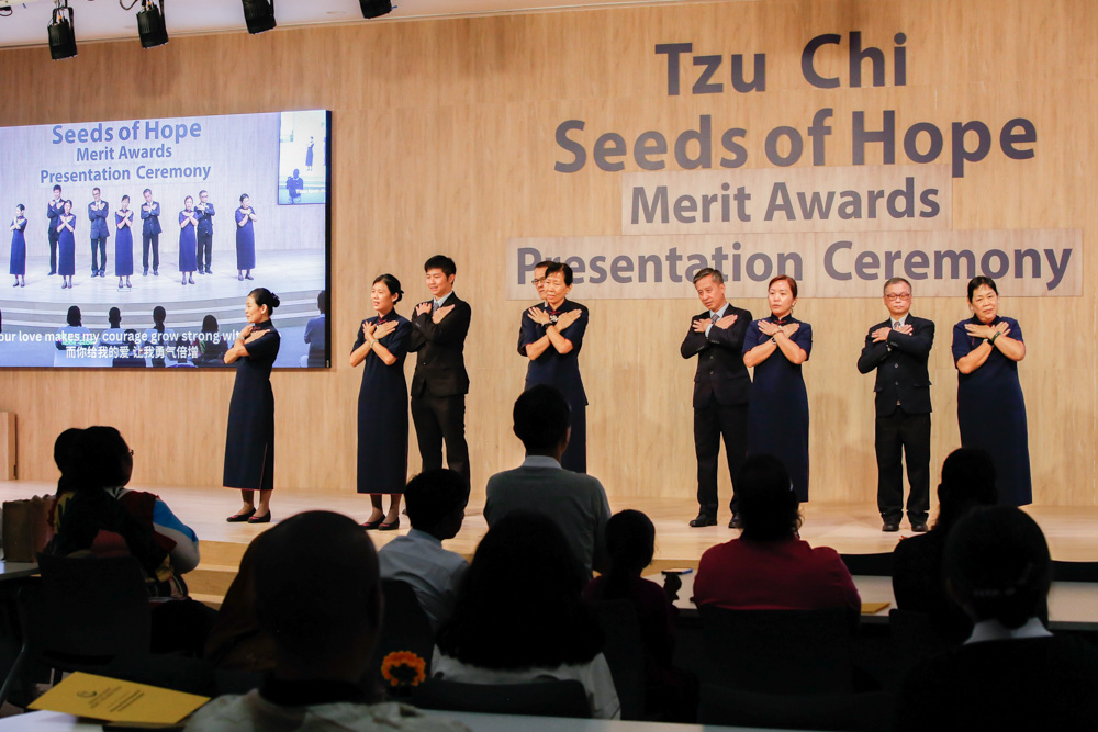 新芽励学金鼓励学子在各个领域发挥潜能与专长,奖项分别为学习杰出奖、课外杰出奖、学习进步奖、全勤奖、品德优良奖和孝悌奖。得奖的学生有来自小学、中学、理工学院和工艺教育学院的学生。慈济志工每月上门访视除了关心照顾户家庭状况,也会关心孩子的学习,给予鼓励。颁发典礼上,志工与孩子很欢乐地一起玩问答游戏,这份情感是经过时间累积的。