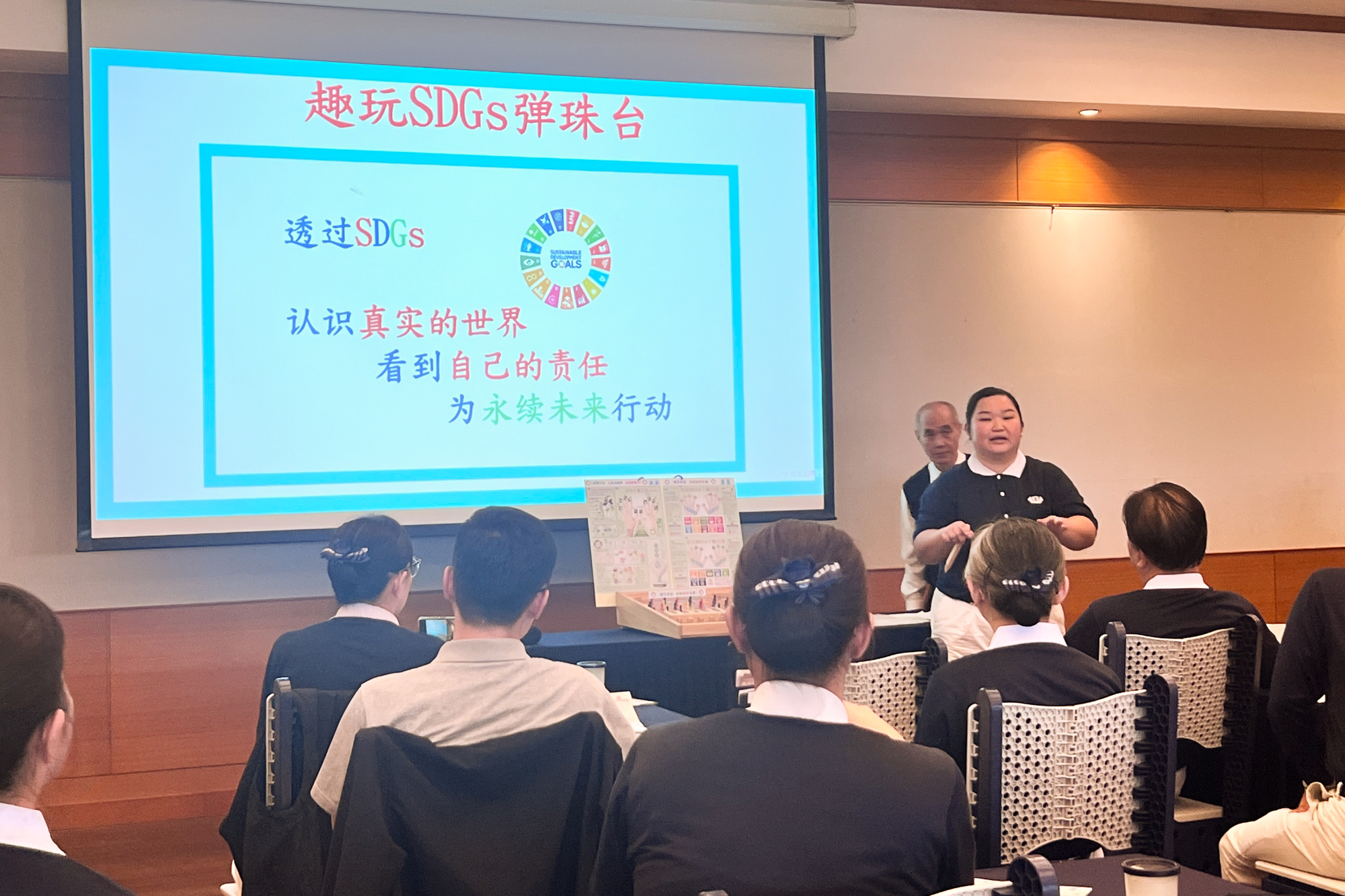 下午课程以互动体验为主,主题为“东西的一生由你决定”,透过口诀、道具与游戏的结合,引导学员在轻松氛围中理解永续发展概念,熟悉“环保十指口诀”也让原本宏观的目标,逐渐贴近日常生活。