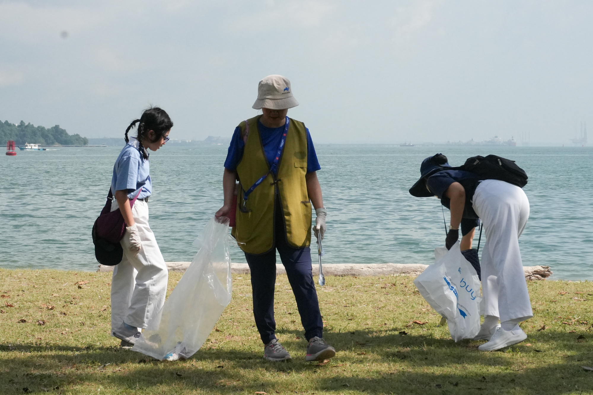 这一幕出现在2025年10月26日的慈少净滩活动中。这天慈少、家长以及志工共约一百人齐聚在樟宜海滩,投入四小时的净滩,为守护地球尽一份心力,也期许在年轻学子心中留下守护大地的理念。